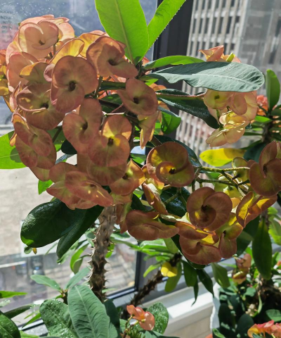 刺梅花朵呈筒状或管状,花冠颜色多样,常见有白色、粉色、黄色等,花心部分常有黄色或橙色的斑点,整体呈现出优雅而富有层次感的外观。