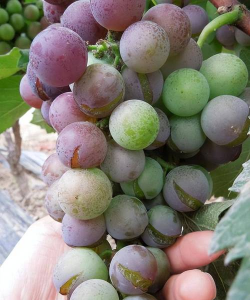 葡萄属于浆果类果树,裂果对葡萄造成的损失远比其他果树严重得多。一些鲜食葡萄品种如乍娜、凤凰12号、里扎马特、红蜜及莎巴珍珠、京优等品种在采收前均有不同程度的裂果现象,严重影响了鲜食果品的商品价值。
