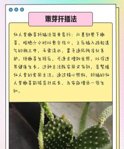 选取健康的仙人掌茎部,切下一段带有芽点的部分,插入沙质土壤中,保持湿润,约2-3个月即可生根。