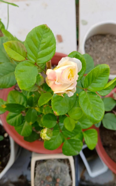 月季对光照需求较高,如果生长环境光照不足,植株会生长迟缓,开花小且数量少。