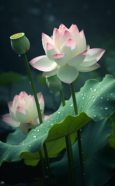 荷花的荷叶是其最显著的特征之一,与荷花搭配可形成“荷叶映水”的美景,增强观赏性。