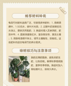 龟背竹是一种常见的室内观赏植物,生长过程中需要适量的养分。以下是龟背竹常用的肥料类型及使用方法: