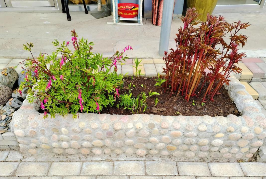 - 花池边种植小型盆栽:如多肉、绿植等,适合空间有限的区域。
