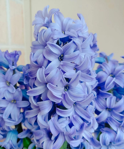 花型:风信子的花冠由多个花瓣组成,通常为四瓣,花心部分有明显的中心花蕊,花型优雅,富有层次感。