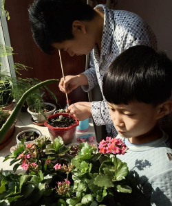 教儿子养花