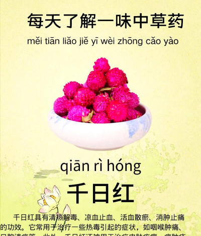 千日红是一种常见的观赏植物,因其花朵在阳光下能持续开放数日而不凋谢而得名。它的花朵通常为红色,形态优美,常用于花坛、花境或盆栽装饰。以下是对千日红的几种常见形容方式: