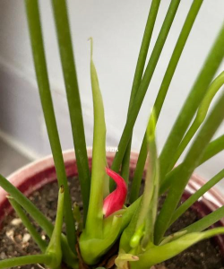 花芽:在某些品种中,红掌的芽体可能同时发育出花芽,表现为花苞状的结构,颜色鲜艳,带有明显的花蕾。