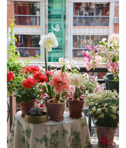 - 例如:玫瑰、茉莉、郁金香、向日葵等,适合阳台摆放。