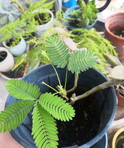 含羞草的叶片呈卵形或椭圆形,叶缘有轻微的波浪状起伏,叶面光滑,叶背略带细小的绒毛。