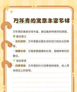 万年青是一种常绿植物,因其常年常绿、生长迅速、生命力顽强而常被用来象征长寿、永恒和坚韧不拔。在不同的文化中,万年青也有不同的象征意义:
