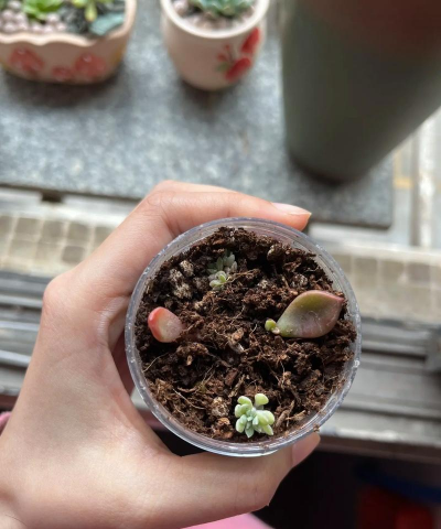 播种或移栽:将发芽的多肉叶片插入土壤中,深度约为叶片的一半,确保根部接触土壤。