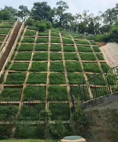 陡坡绿化,对于坡度超过25°的边坡,绿化时要注意边坡防护,可选用灌木、草本类植物,可在边坡上打桩,设置栅栏,浆砌石框格以利于边坡稳定和植物生长。