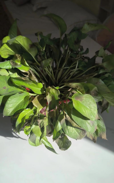解决方法:将绿萝移到光线充足的位置,避免长时间处于阴暗处。