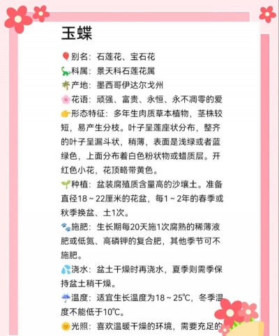 以上是玉蝶多肉植物的养护要点,根据实际生长情况适当调整。