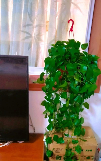 绿萝喜欢明亮的散射光,如果长期处于光线不足的环境中,植株会逐渐生长得细长,导致茎部变弱,出现垂下现象。