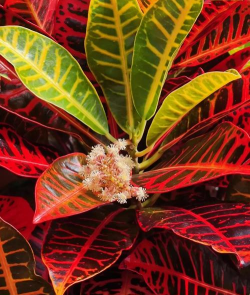 大戟科变叶木属,别名洒金榕(叶色黄)等,原产地为马来西亚。属于易受冷害的植物。其品种多,叶色、叶型差别较大。