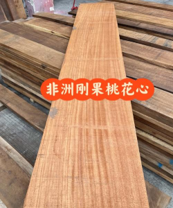 非洲桃花心木,树干通直,出材量高,木材细致,/边材黄白色,心材红褐色,一般敷有紫色。木纹交错或平直,通常带波状纹,材色调和,花纹美丽,切面光滑,经染色、抛光后表面效果颇佳。