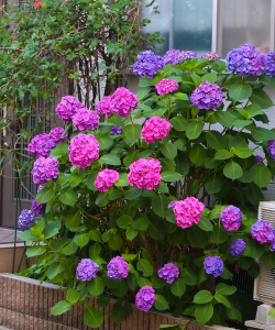 5月上旬可将八仙花苗移至室外.放置在半阴环境中养护。当新梢长到10一15厘米左右时即可摘心,促生分枝。待分枝长至8一10厘米时.进行第二次摘心,以利于株形端正匀称.如果摘心过迟,则影响花芽分化和正常开花。以后每年花后将枝条短剪,促生新枝。待新枝长至8一10厘米时.再进行摘心,促使新枝的芽充实.以利于第二年花繁叶茂。
