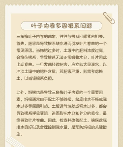 三角梅(学名:Plectranthus amboinicus)是一种常见的观赏植物,其叶子在特定条件下容易出现卷曲现象。以下是可能导致三角梅叶子卷曲的常见原因及解决方法: