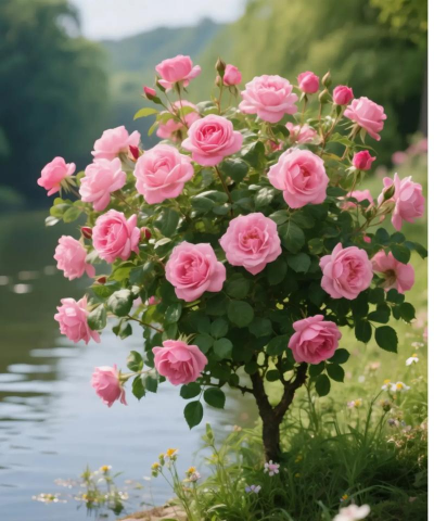 玫瑰(Rosa):玫瑰是粉红色大花的典型代表,有多种品种,如大红玫瑰、粉红玫瑰等,花朵颜色丰富,花型多样。