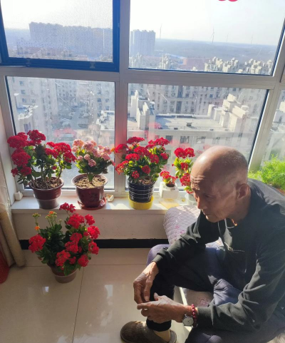 爷爷养花入迷