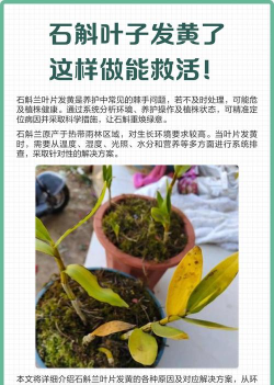 石斛茎杆发黑、黄叶是常见的病害问题,通常与病菌感染、环境不适或养护不当有关。以下是可能的原因及应对措施: