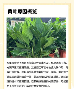 万年青黄叶问题多由环境、养护方式或病虫害引起。建议定期观察植株状态,调整浇水、施肥和光照条件,保持良好的生长环境。如需进一步帮助,可提供具体生长环境信息。