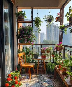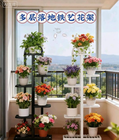 花架和悬挂花盆可以将植物悬挂起来,节省空间,适合阳台、窗台等地方。