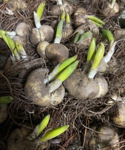 - 适合多年生植物,如郁金香、风信子等,将植株分成几株进行种植。