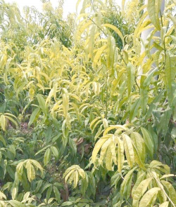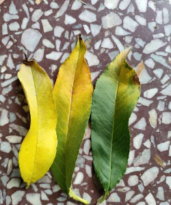 原因:树体光照不足,影响光合作用,导致叶片发黄。