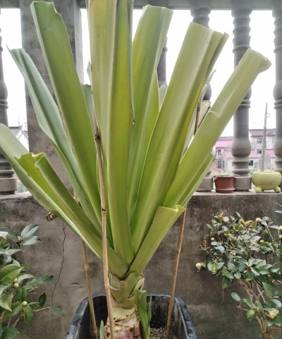 形态特征 多年生草本。株高1.5一2米。叶基生,呈莲座状生长,宽带状披针形,长1一1.5米,宽10一14厘米,全缘,嫩叶紫红色,老叶绿色,纸质。花草长70一100厘米,淡紫红色;伞形花序腋生;小花20--30,外面紫色,内面白色具紫色纵纹,具芳香;苞片2枚,紫红色;花瓣5,条形,长14厘米。茹果。花期3一9月。