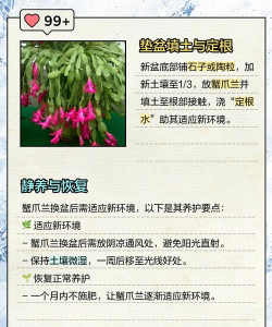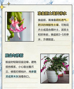 给蟹爪兰换土换盆是保持其健康生长的重要步骤。以下是换土换盆的步骤和注意事项: