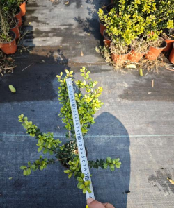球形苗 将穴盘苗或网袋苗移入较大容器(口径16厘米、深度12厘米)中,经28个月的三次修剪和精心培育,形成球形苗。其苗高40厘米,冠幅40厘米,一级分枝2个以上,一级分枝点高度5厘米;二级分枝4个以上,二级分枝点高度10厘米,三级分枝8个以上,三级分枝点高度20厘米,球形饱满,植株健壮,成品率95%。