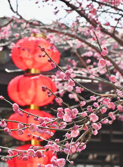 梅花多在早春开花,通常在春节前后,花期较短,需在适宜的温度和光照条件下生长。适宜种植在阳光充足、排水良好的土壤中。