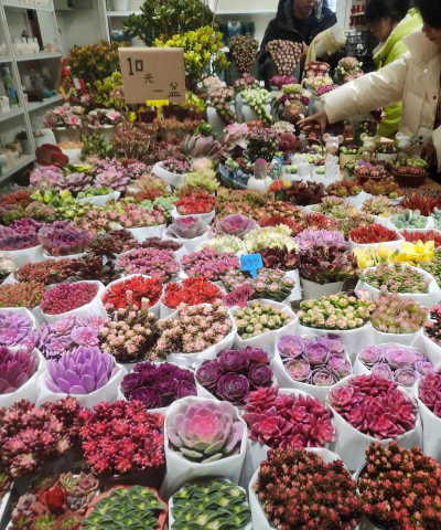 昆明的多肉植物市场品种繁多,涵盖多肉植物的各个类别,如: