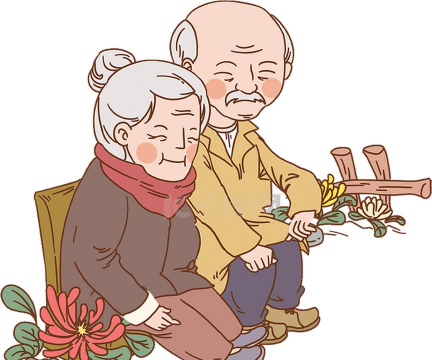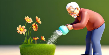 卡通老头养花