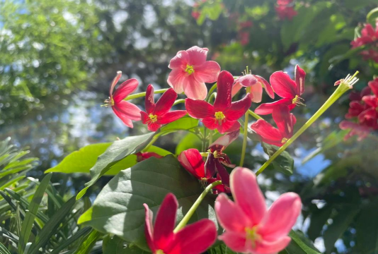 使君子花需要充足的阳光,每天至少6小时以上的直射光照,有利于光合作用和花芽形成。
