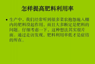 化肥利用率受施肥量、施肥种类、土壤特性、作物品种等许多因素的影响,在一些地方氮肥的利用率在20%~50%,磷肥的利用率在10%~30%,氮、磷的利用率很低.需要采取措施来提高化肥的利用率。只有使肥料得到很好的利用,才能降低成本,增加收益。