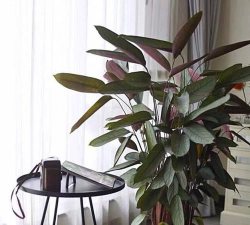 紫背竹芋喜欢明亮的散射光,如果长期处于阴暗环境,会导致叶片变黄、发软。