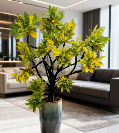 洒金榕叶片金黄,四季常绿,是室内观赏植物的理想选择,适合用于客厅、阳台、书房等空间,增添自然美感。
