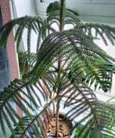 南洋杉喜欢充足的阳光,如果光照不足,会导致枝叶发育不良,出现发白现象。