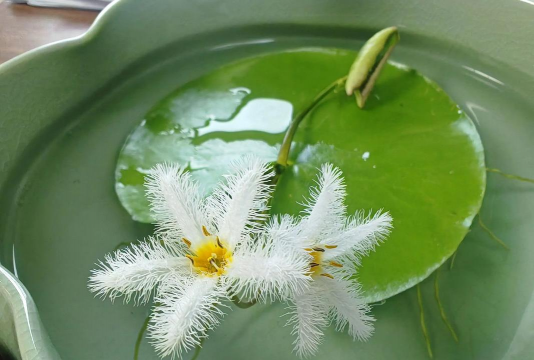 白瓷盘养花