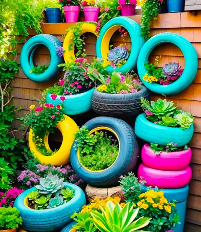 - 组合使用:将多个轮胎组合在一起,形成一个小型花圃,适合种植多肉植物、绿植等。