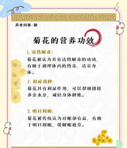 吃菊花在传统文化中有多种含义,主要与养生、吉祥寓意和药用价值相关。以下是常见的几种含义: