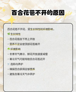 百合不开花可能是由多种因素引起的,以下是一些常见原因及解决方法: