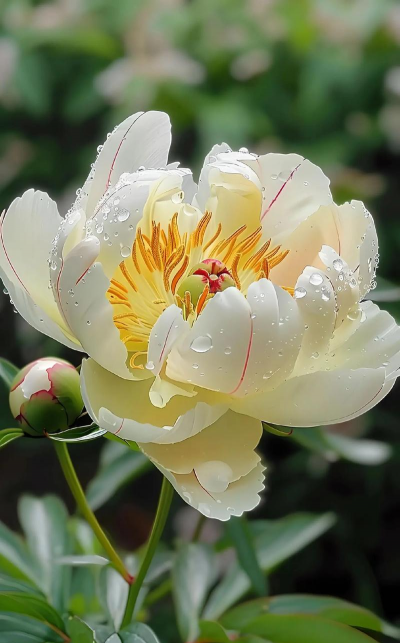牡丹花的花蕊通常为雄蕊,由花药和花丝组成,花药呈黄色或白色,花丝细长,花药内含有花粉。