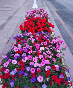 - 矮牵牛:花色丰富,适合花坛边角。