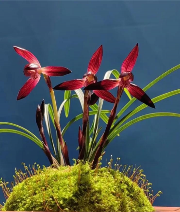 垂枝春兰:叶片下垂,花型优美,是春兰中较为少见的品种。