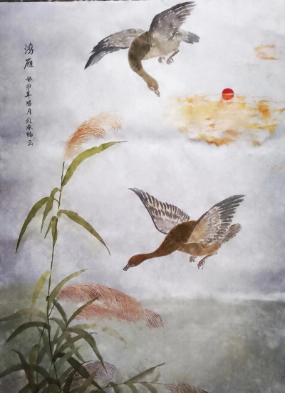 荷花在生长过程中需要克服淤泥、风雨等困难,象征着坚韧不拔的精神。大雁迁徙途中也需面对风霜雨雪,寓意着面对逆境依然坚持前行。