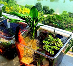 - 鱼缸盆养花需要适量光照,建议每天提供 2-3 小时散射光,避免阳光直射导致植物灼伤。